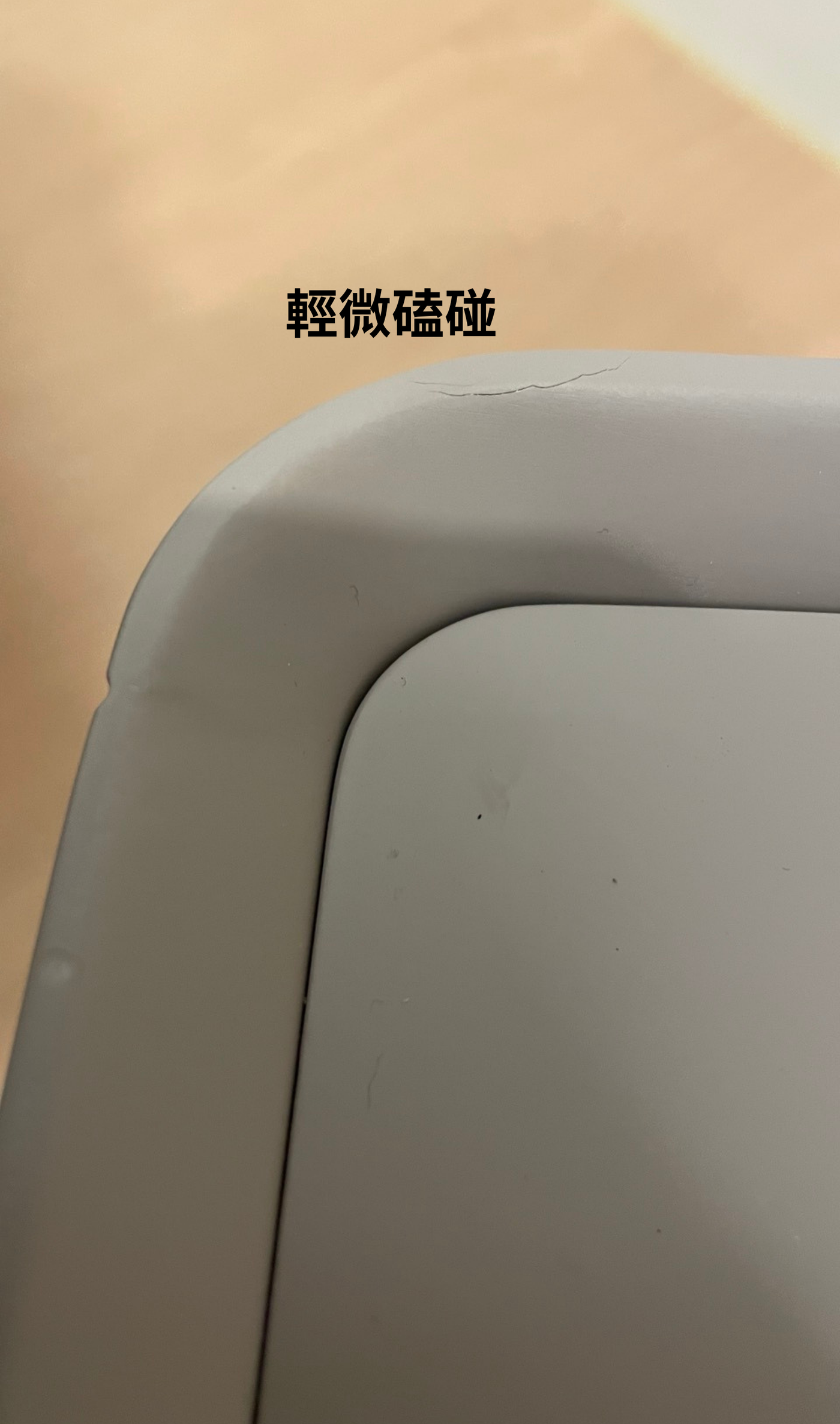 輕微擦傷、輕微脫漆、輕微裂痕、些微殘膠、些微污染、些微不平。